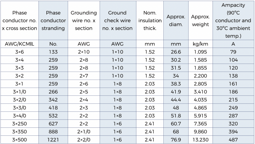- Grounding conductors: Four cores in annealed flexible stranded copper, EPR insulated